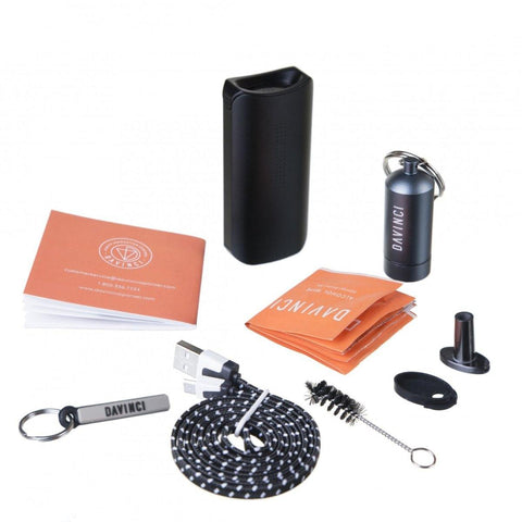 DaVinci IQ The DaVinci IQ is not only a feast for the eyes, there are also many exciting new features hidden in its elegant, anodized aluminum housing. It's an incredibly intuitive and easy-to-use vaporizer that produces pleasant, aromatic vapor. Replaceable 18650 Battery Many modern portable vaporizers have a built-in (and not user-replaceable) battery, but the IQ is powered by a single replaceable (and rechargeable) 18650 battery that can easily be replaced with a full one. A fully charged battery has an operating time of up to 1.5. It takes three hours to charge the battery. Flavor & Cool Vapor Listening to their customers' opinions, DaVinci's developers have focused on combining premium materials and precision engineering to ensure the IQ has one of the most accurate temperature control systems in the industry. Through a 100% ceramic zirconium air duct, only the purest vapor is drawn through the mouthpiece of the DaVinci IQ. The zirconium air duct goes from the heating chamber through the aroma chamber, an extension through which the vapor can be cooled before it is inhaled. As DaVinci's founder, Cort Smith, put it in a nutshell: “People don't want their vaping experience to be contaminated with metal or plastic tastes; they want to taste what they put into a device and nothing else. "Vibration function The IQ works with vibration signals that replace staring at an LED lamp or a screen when you want to know when the device is ready! Smart Path Technology , Vaporizing Temperatures & Boost Mode The IQ is equipped with the unique so-called "Smart Path" technology. This allows four different temperature settings to be selected and the device automatically sets the best temperature for the current vape session. Other functions are precision - and the Boost mode The Boost mode is a great alternative for experienced vaporizer enthusiasts, in which the temperature inside the heating chamber is raised to a maximum of 220 ° C (430 ° F) at the push of a button and thus everything can get out of his herb. It may be charged with a maximum of 1 amp wall adapters. Please note the warnings on the Ve packing. (Most smartphone power supplies run with more than one ampere of current and are therefore not suitable). We recommend charging the battery in an external power supply unit. This is gentler on the battery and on the mini USB port. Bluetooth smartphone app To make the vaporizing experience even more individual, the DaVinci IQ can be connected to an Apple or Android smartphone and controlled using its own app. This allows you to change the temperature settings of the heating functions, track the application or dim the LED lights. The use of the app is optional, the temperature setting can also be accessed directly from the device itself. Scope of delivery DaVinci IQ vaporizer